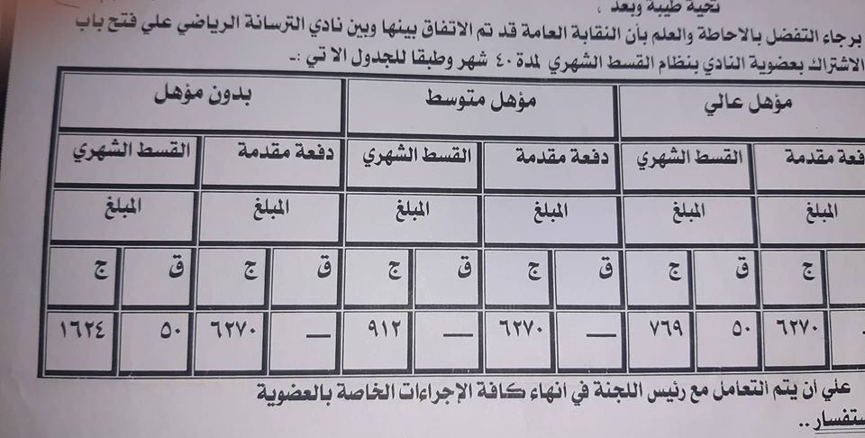 يحصل عضو النقابة على تخفيض لسعر العضوية ويتم دفعها بنظام التقسيط على مدار 40 شهر